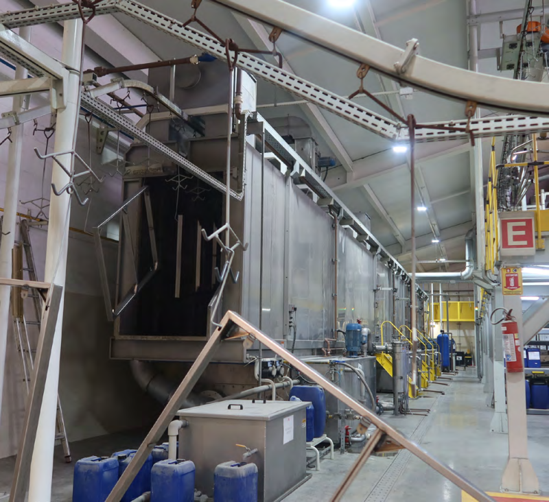 O tratamento de superfície limpa a peça a ser pintada e prepara a superfície para o recebimento da tinta. Na Erzinger, desenvolvemos o sistema de pré‑tratamento em parceria com o fornecedor químico do cliente, personalizando os estágios necessários do processo e o tempo de aplicação conforme as características específicas do substrato em questão.