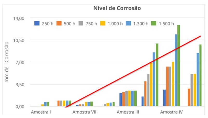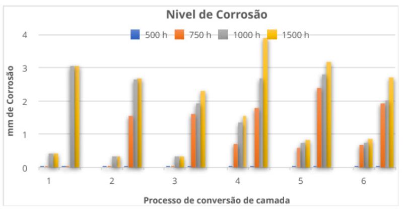 Diferença nos níveis de corrosão das amostras de soluções de conversão (Figura 11)