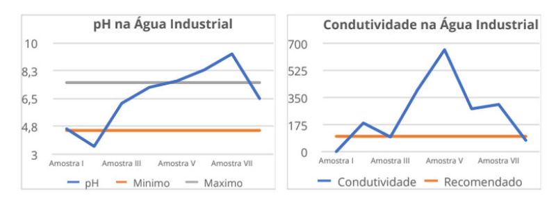 Valores de pH e de condutividade nas amostras de água industrial (Figura 09)