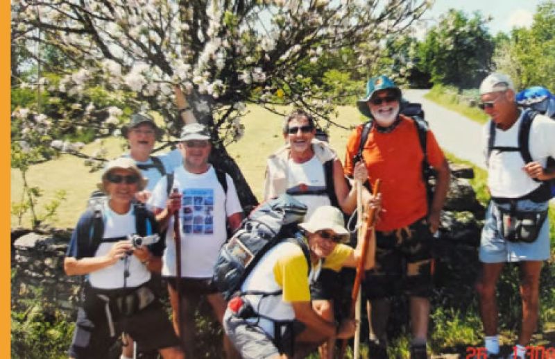 Foto 13 – Eládio, no centro, em pé de camisa branca, na Caminhada de Santiago de Compostela.