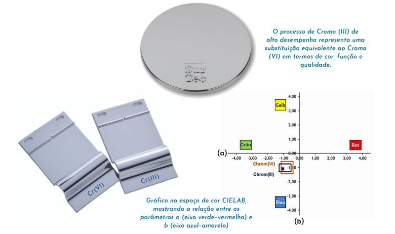 Um processo especial de cromagem trivalente oferece uma alternativa completa ao cromo (VI), com qualidade equivalente. Ele proporciona durabilidade, dureza e acabamento de cor semelhantes, possibilitando a substituição segura e eficiente do cromo (VI).